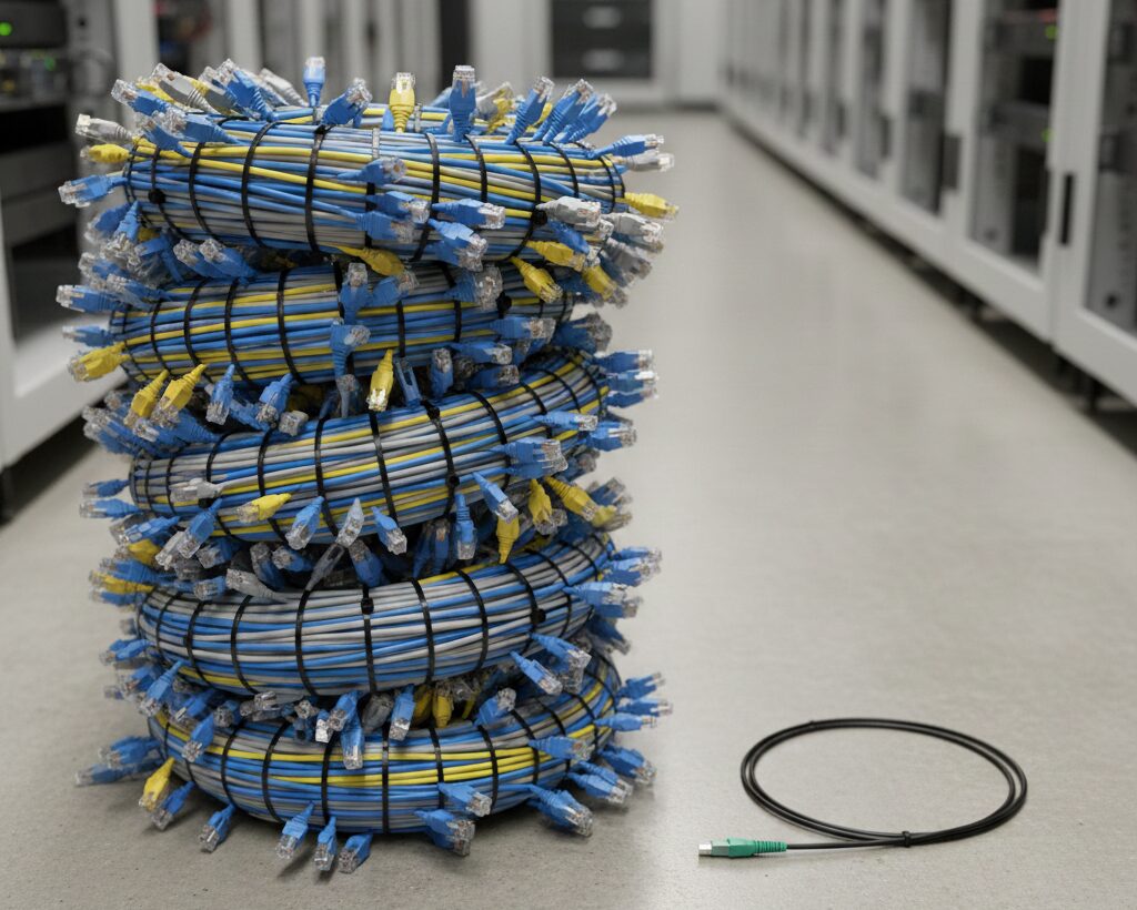 Généralement les réseaux locaux sont câblés en réseau Ethernet c’est-à-dire via des câbles cuivre multipaires et des connecteurs RJ45. Mais les débits disponibles sur cette technologie sont limités et la longueur des câbles est un point critique : plus le câble est long, plus le débit est faible. Au-delà de 100m, le débit s’approche de 0 bps.
