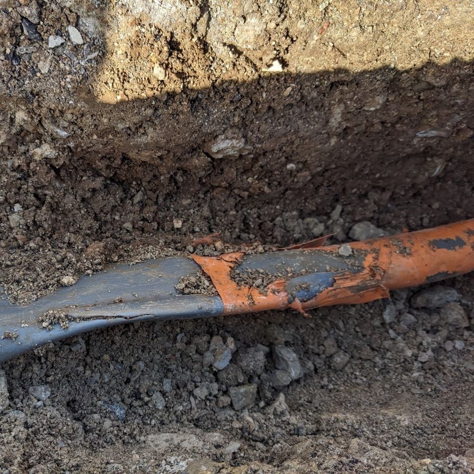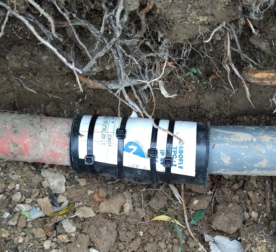 Pour cela nous creusons à l’endroit et à la profondeur indiquée par notre diagnostic. Lorsque nous rencontrons la gaine, nous nettoyons autour afin de la rendre accessible puis nous l’ouvrons pour comprendre ce qu’il s’y passe.