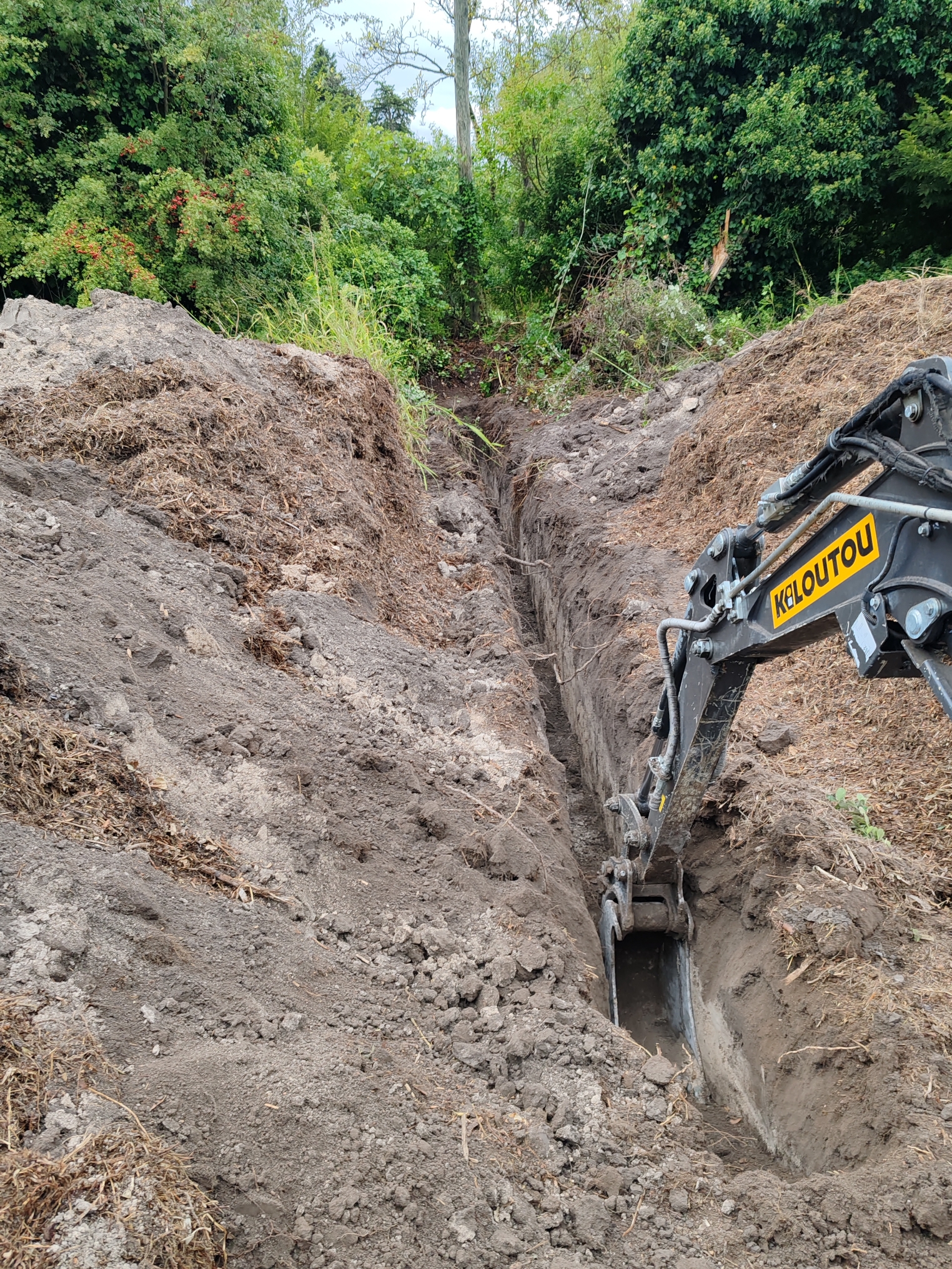 - Nous réalisons alors la tranchée (à la main ou à la mini-pelle)